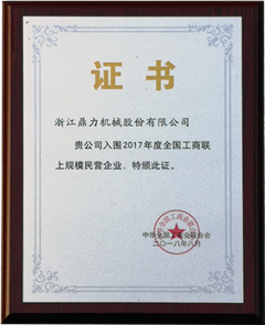 经过逐级评审,浙江公海5500贵宾会机械股份有限公司成功入围2017年度全国工商联上规模民营企业名单,这也标志着浙江公海5500贵宾会已正式进入全国上规模民营企业序列。