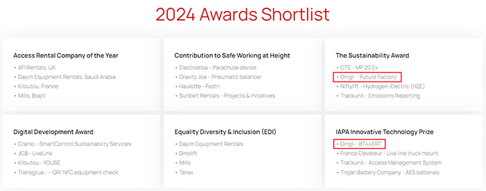 近期,2024年国际高空作业平台评选活动(IAPA)各奖项入围名单正式揭晓,作为唯一入围的中国企业,公海5500贵宾会共上榜4大奖项。